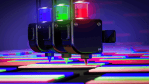 Our specialization is OLED emitters. These chemical compounds emit light when electricity is applied and are a vital part of any OLED display, determining its color accuracy, contrast, and lifetime. The OLED (Organic Light Emitting Diode) display stack is made up of thin layers of organic materials. One of these layers, and perhaps the most important one, is the emitter – which actually converts electricity into visible light. This emitter and the rest of the organic materials together form a sub-pixel, the basic building block of an OLED display.